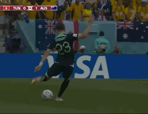 Animated Gif showing: World Cup 2022 - Tunisia vs Australia 0-1: Mitchell Duke's Goal