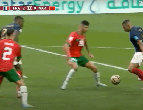 Animated Gif showing: World Cup 2022 - France vs Morocco 2-0: Randal Kolo Muani's Goal